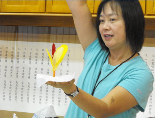 ![]() Ms. Wen was demonstrating how to do decoration to a gourd after it is painted. |