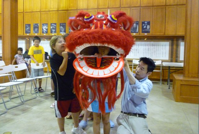![]() Mr. Kang was helping students learn how to operate a lion head. |